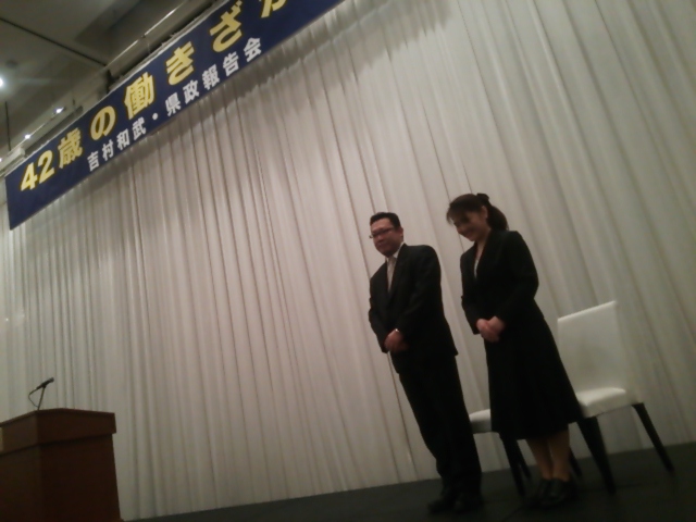 そして夕方、パレスグランデールで行われた、山形市選出の吉村和武県議の県政報告会へ。