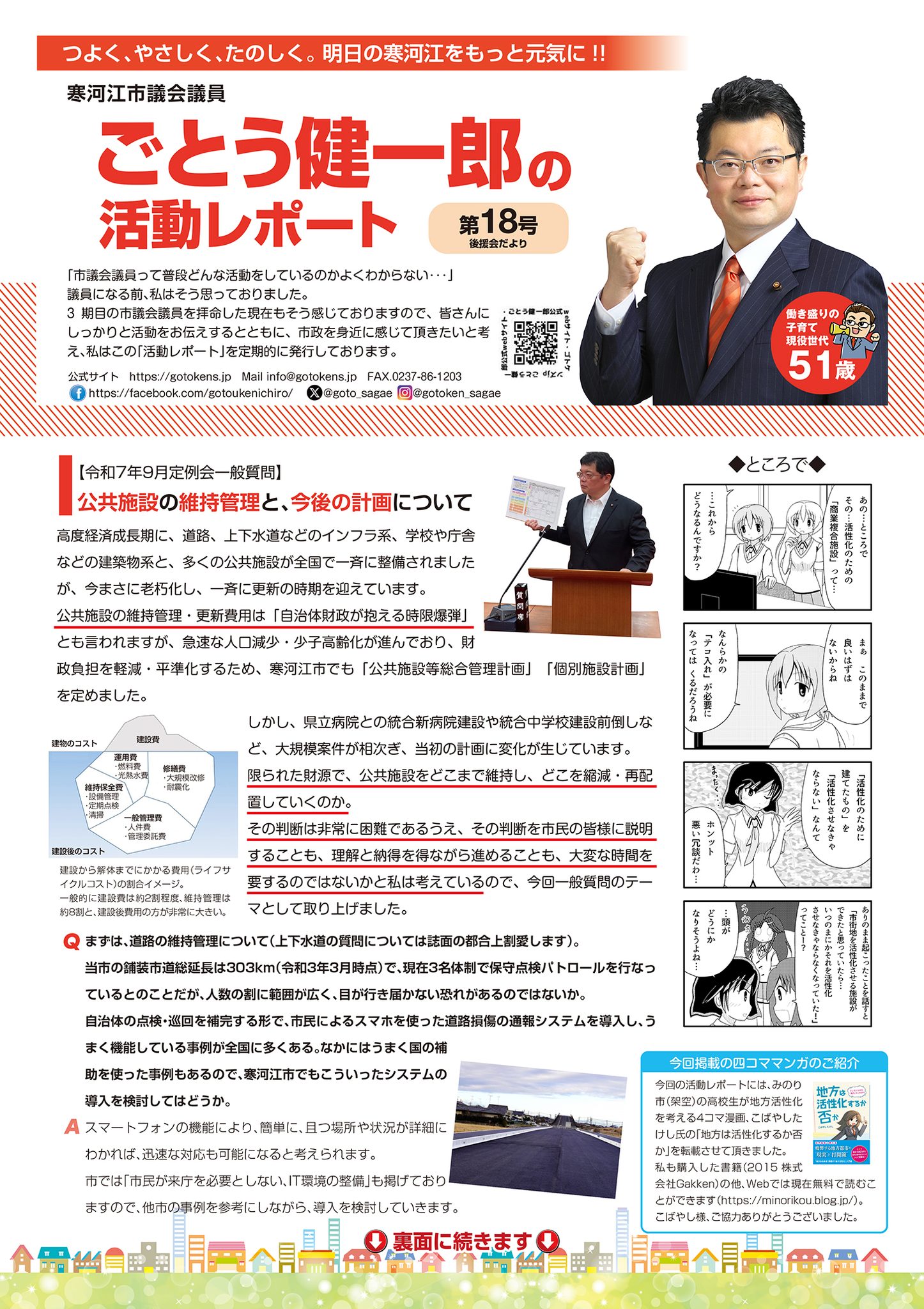 9月24日に9月定例会が終わったばかりですが、私が行った一般質問を要約し掲載した「活動レポート Vol.18」ができあがりました。