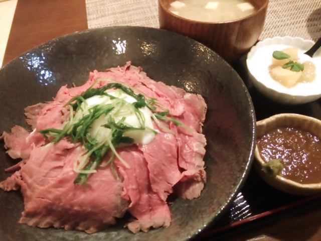 その時に頂いたのがこちらの牛もも肉を使った「ローストビーフ丼」(写真は試食会のもの。実際と多少異なるかも知れません)