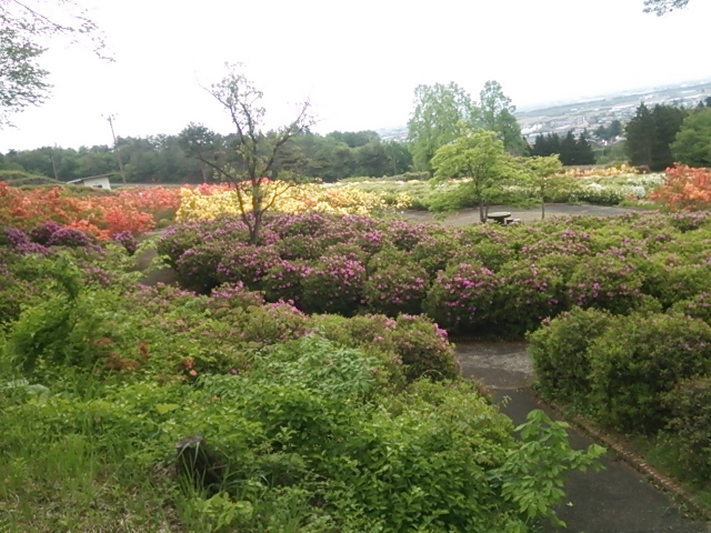 3.2へクタールと東北最大規模で、単一種ではなく、おおむらさきツツジ、山ツツジ、レンゲツツジ、黄レンゲツツジ、紅霧島ツツジ、日の出ツツジ、霧島ツツジ、琉球ツツジ、久留米ツツジに加え、今年から平戸ツツジ、皐月ツツジが仲間入りし、合計11種類、寒河江市民と同数の4万3千株の色とりどりなつつじが咲いています。
